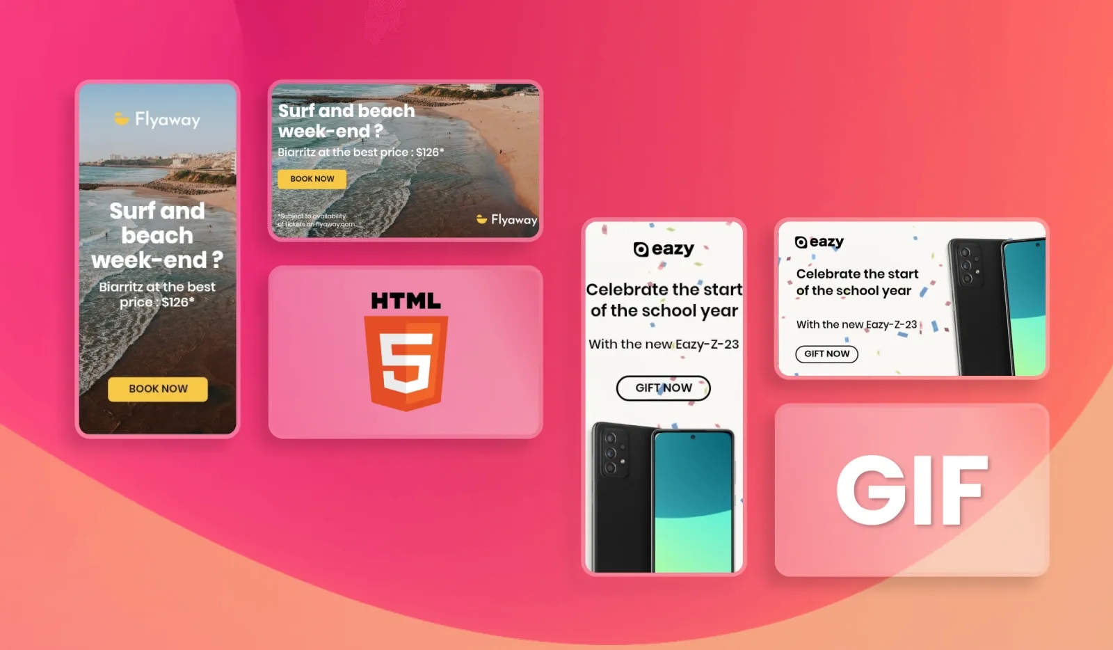 Static banners: These are simple image-based ads that don't feature any animations or interactive elements. They are easy to create and can effectively deliver your message.