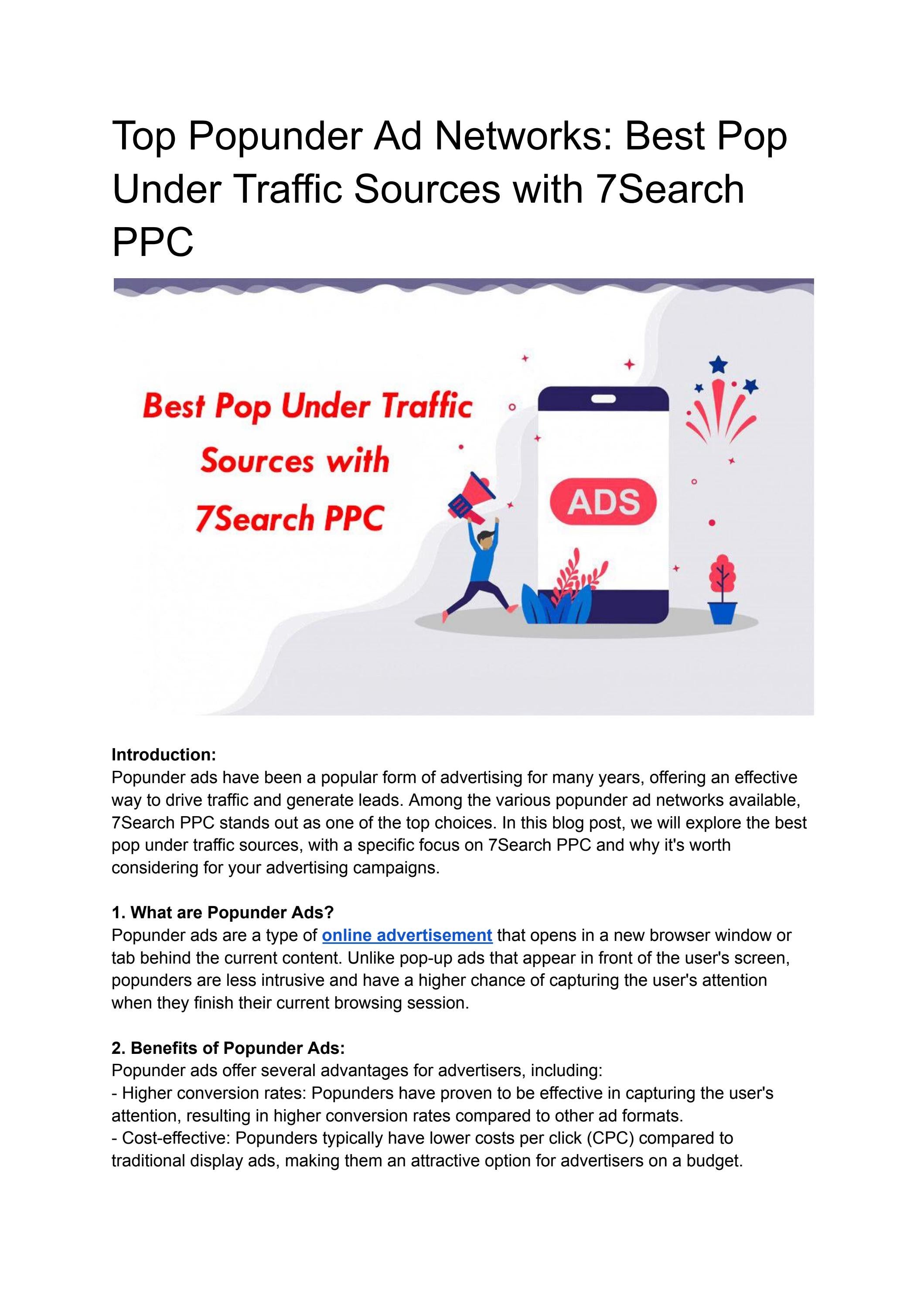 By implementing effective popunder ads and exploring alternative methods like native traffic, you can significantly boost your website's traffic and ultimately increase your online business's success.