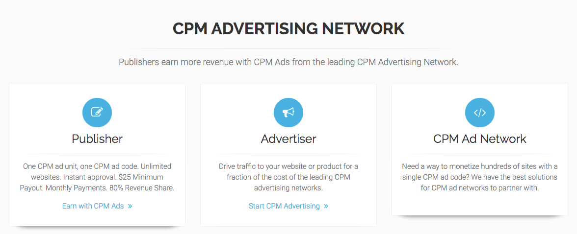 A CPM (cost per thousand impressions) ad network pays you a fixed amount for every 1,000 ad impressions served on your site. This means that even if your visitors don't click on the ads, you still earn money based on the number of times the ads are displayed.
