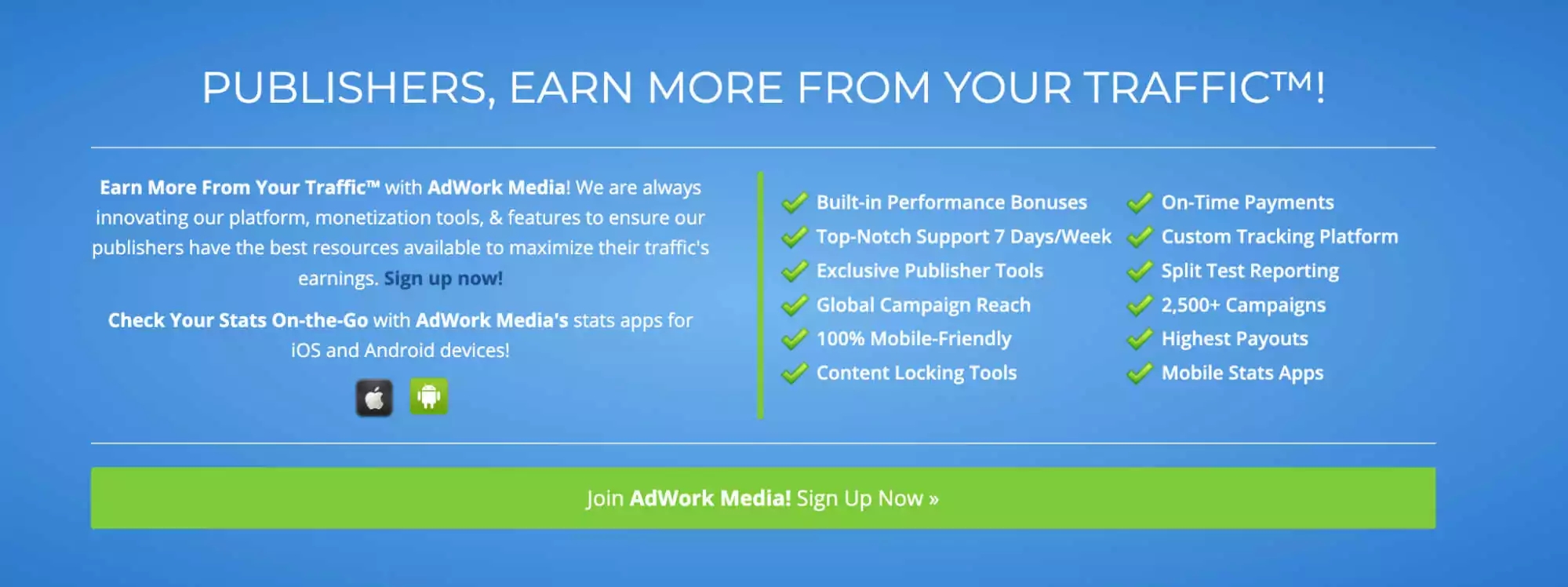 5. AdWork Media: AdWork Media offers a wide range of monetization solutions, including CPA, CPL, and CPI offers. They have a user-friendly platform and provide affiliates with access to an extensive library of promotional tools, such as content lockers, link lockers, and product lockers. AdWork Media also offers competitive payouts and timely payments to its affiliates.